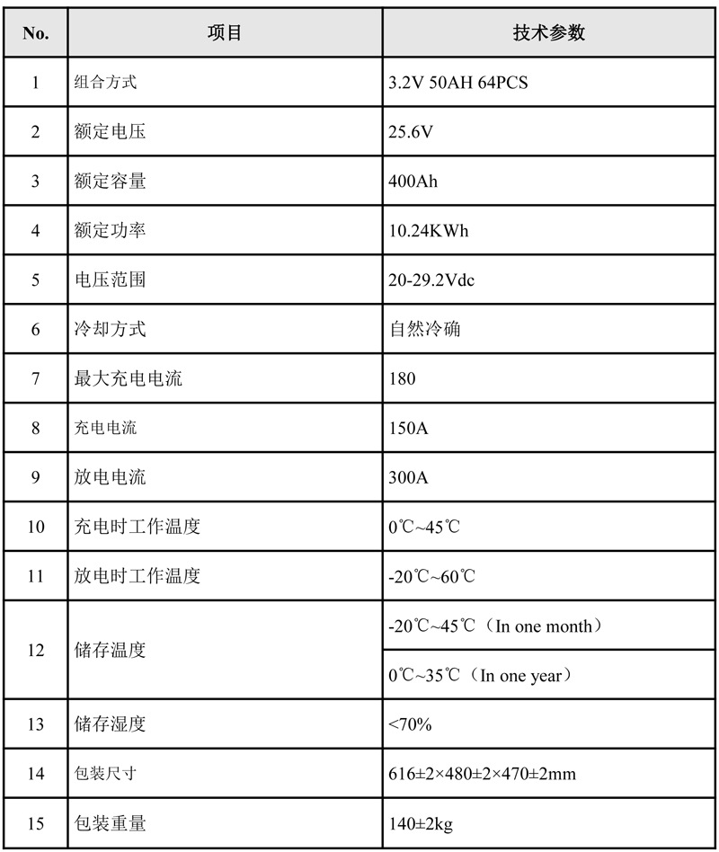 6、輸出電壓直流10.24V,適用于家庭儲(chǔ)能系統(tǒng)、通信站與其它應(yīng)用場(chǎng)所;