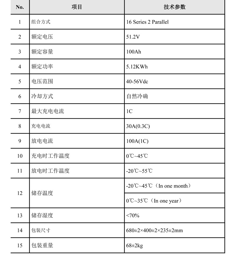 6、輸出電壓直流51.2V,適用于家庭儲能系統(tǒng)、通信站與其它應(yīng)用場所;